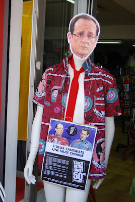 Opportuniste, la marque locale de vêtements Pardon ! a développé une opération marketing peu commune : une édition ultra-limitée - 50 exemplaires - de chemises réversibles à l'effigie des 2 candidats. Un côté Hollande, un côté Sarko ! Sous le slogan "2 candidats, une seule chemise", et l'accroche imparable "Vous aussi impliquez-vous dans les présidentielles 2012 et retournez votre chemise à tout moment".
